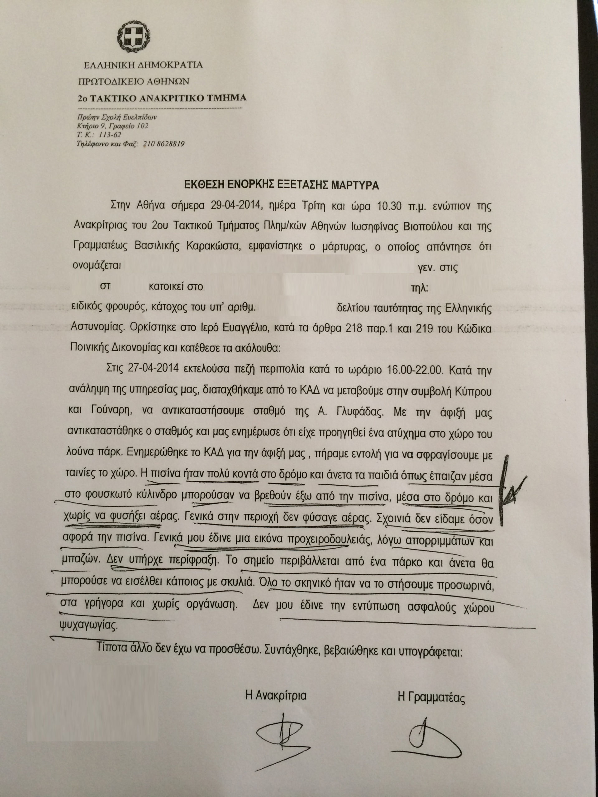 Ολόκληρη η κατάθεση του ειδικού φρουρού για το τραγικό δυστύχημα στον παιδότοπο