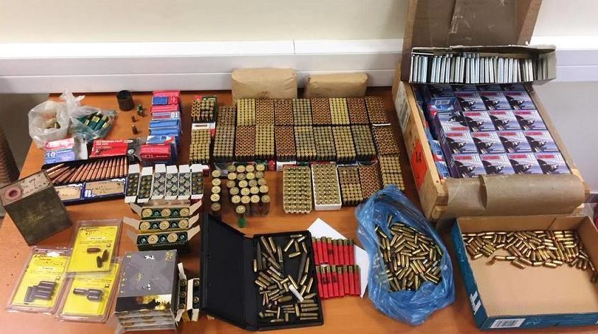 •1 μεταλλική συσκευασία με σκάγια, καθώς και πλήθος καλύκων πυροβόλων και κυνηγετικών όπλων.