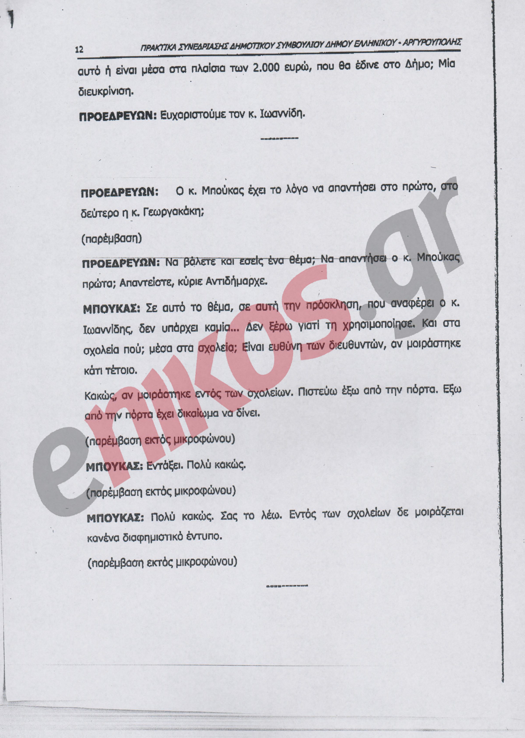 «Σε αυτό το θέμα, σε αυτή την πρόσκληση, που αναφέρει ο κ. Ιωαννίδης, δεν υπάρχει καμία…Δεν ξέρω γιατί τη χρησιμοποίησε. Και στα σχολεία πού; μέσα στα σχολεία; Είναι ευθύνη των διευθυντών, αν μοιράστηκε κάτι τέτοιο. Κακώς, αν μοιράστηκε εντός των σχολείων. Πιστεύω έξω από την πόρτα. Έξω από την πόρτα έχει δικαίωμα να δίνει…Εντός των σχολείων δεν μοιράζεται κανένα διαφημιστικό έντυπο».