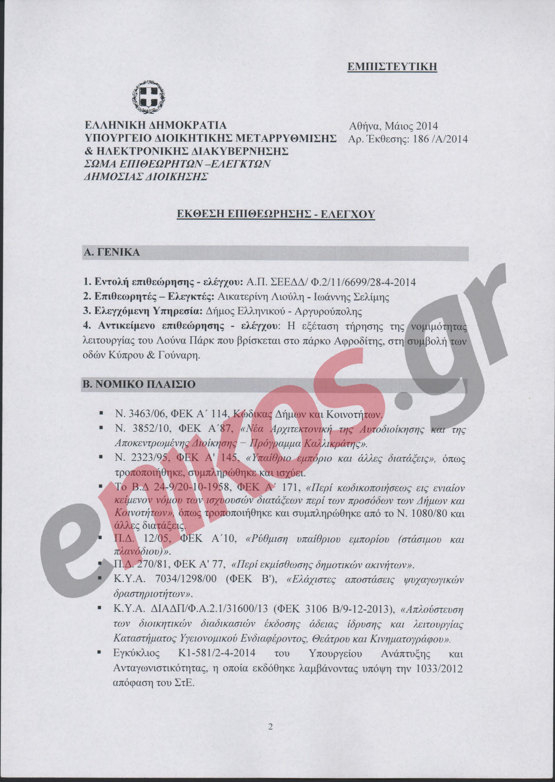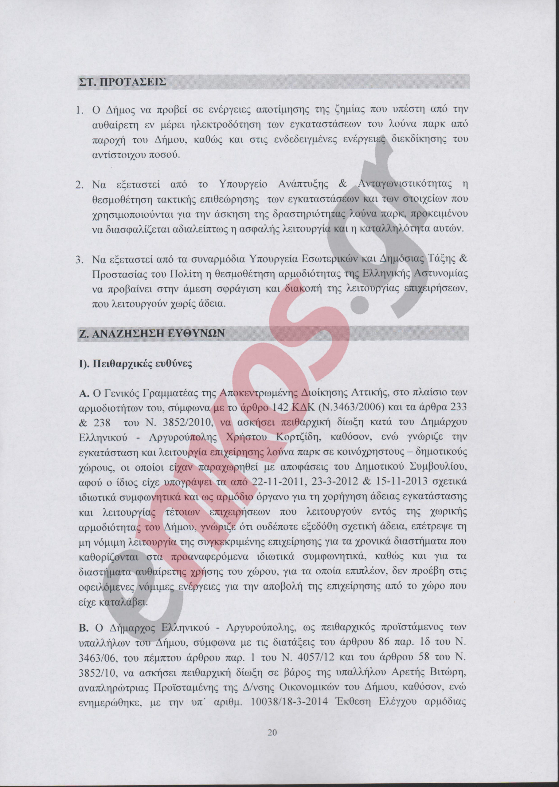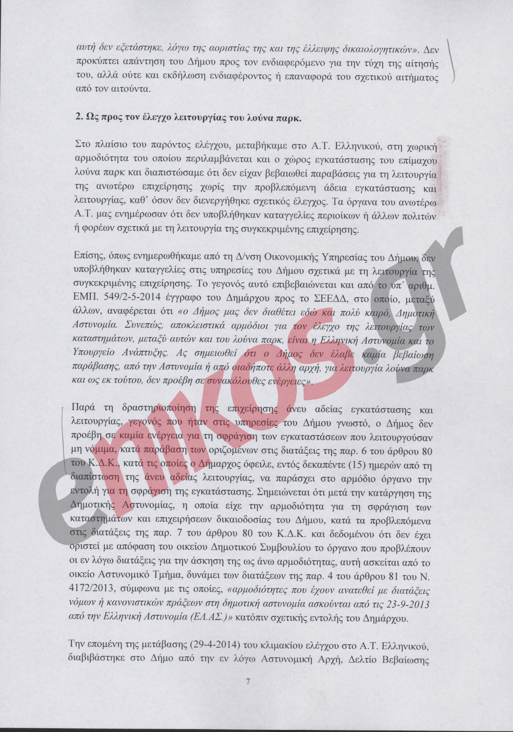 Οι επιθεωρητές καταγράφουν μέσα σε 21 σελίδες όλες τις άγνωστες, μέχρις στιγμής, λεπτομέρειες της υπόθεσης, καταλήγοντας σε διαπιστώσεις και συμπεράσματα που αναδεικνύουν τις αδιανόητες παραλείψεις και τους λανθασμένους χειρισμούς του δημάρχου Ελληνικού Χρήστου Κορτζίδη.