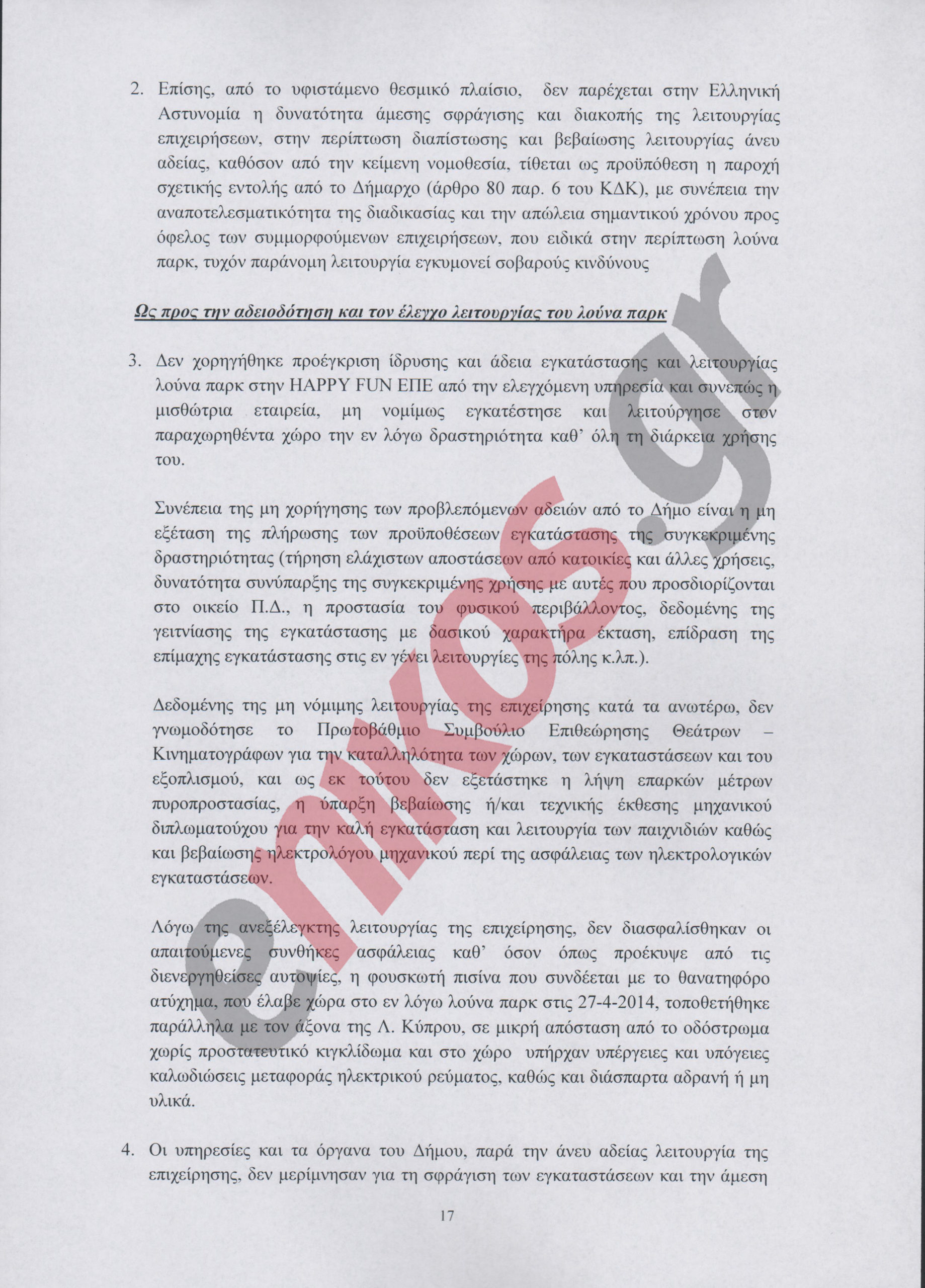 Επίσης, ειρωνικό ακούγεται ότι στην πρώτη αίτησή της εταιρείας για παραχώρηση του πάρκου Αφροδίτης, όπου έγινε το τραγικό δυστύχημα σημειώνεται ότι «τα παιχνίδια μας είναι τελευταίας τεχνολογίας και έχουν και ασφάλεια προς τρίτους»…