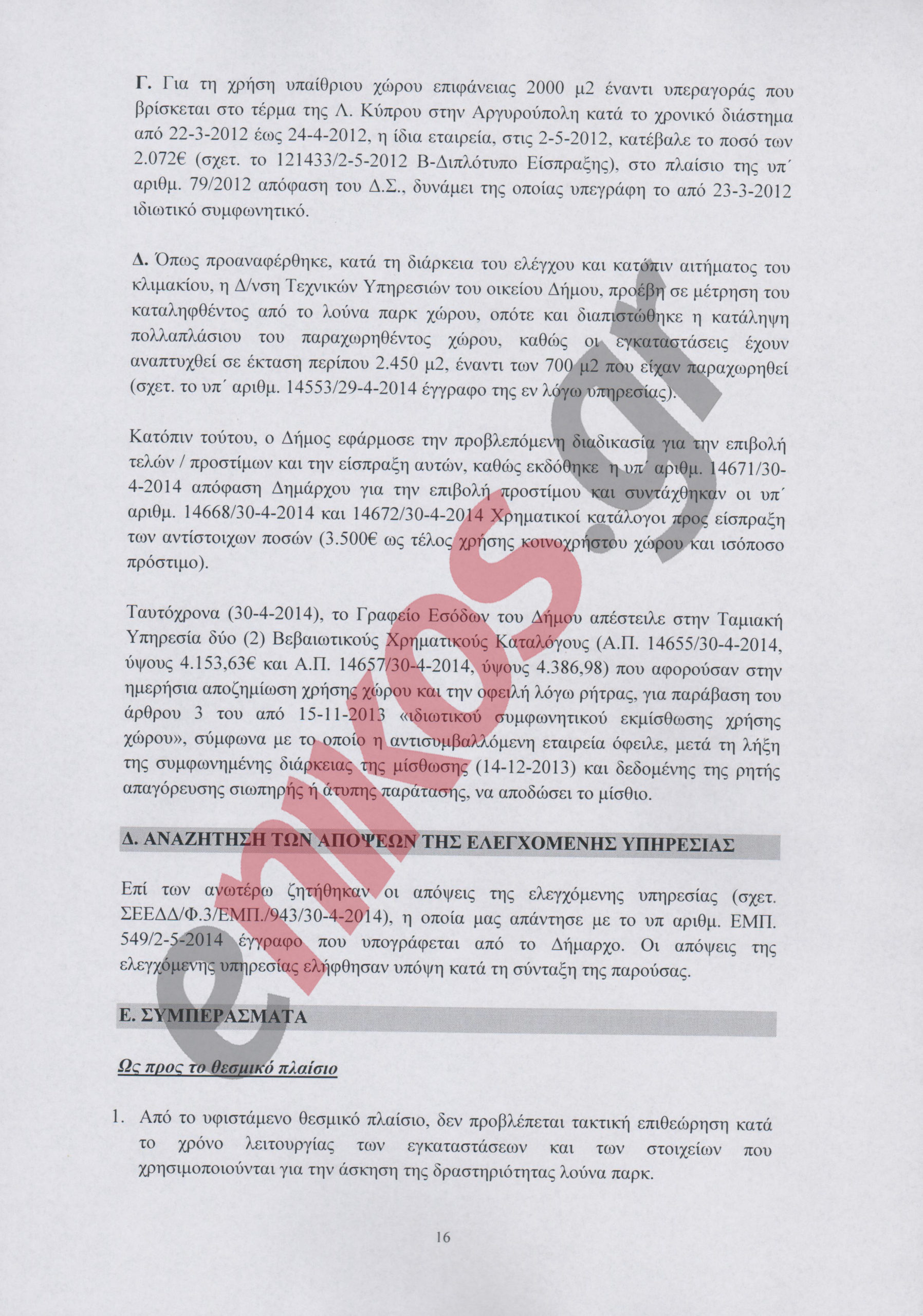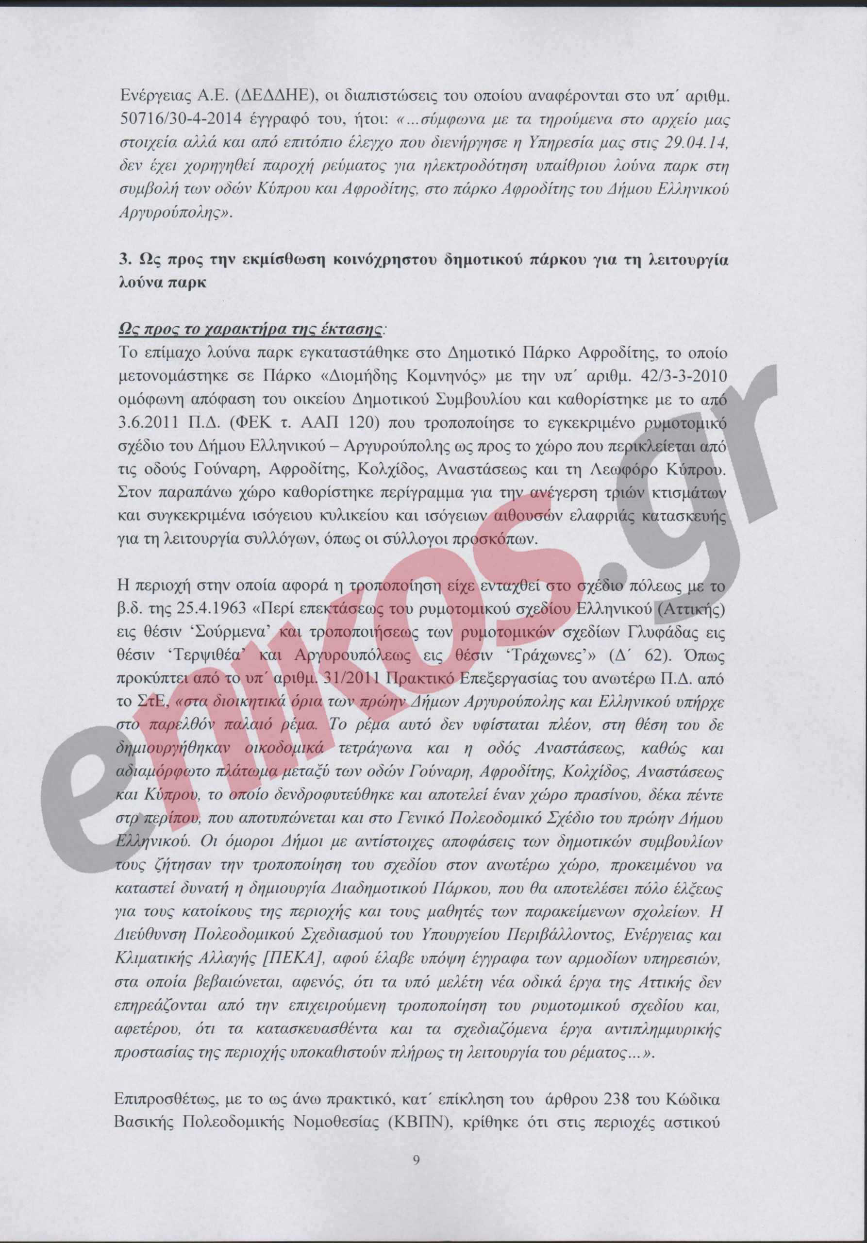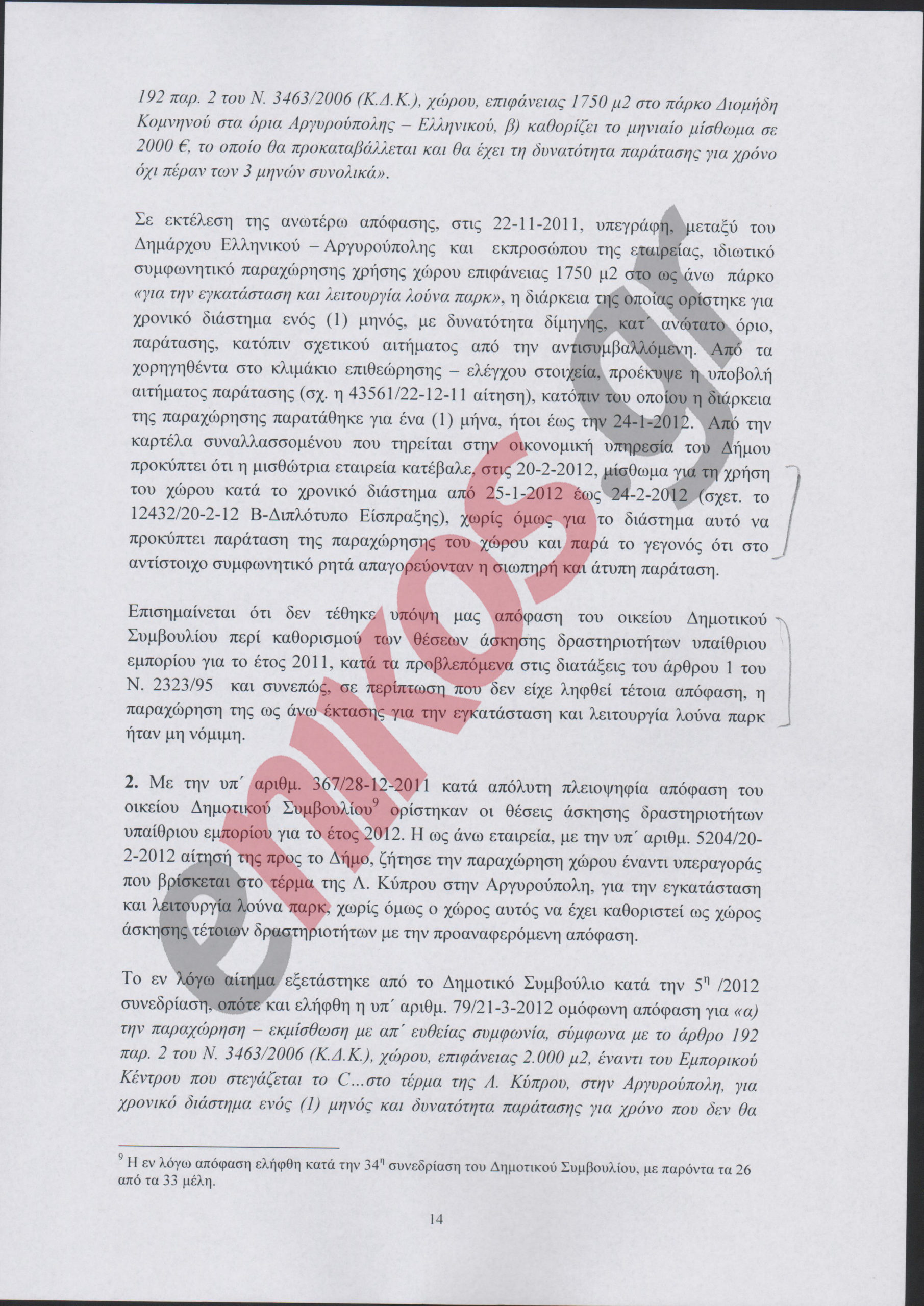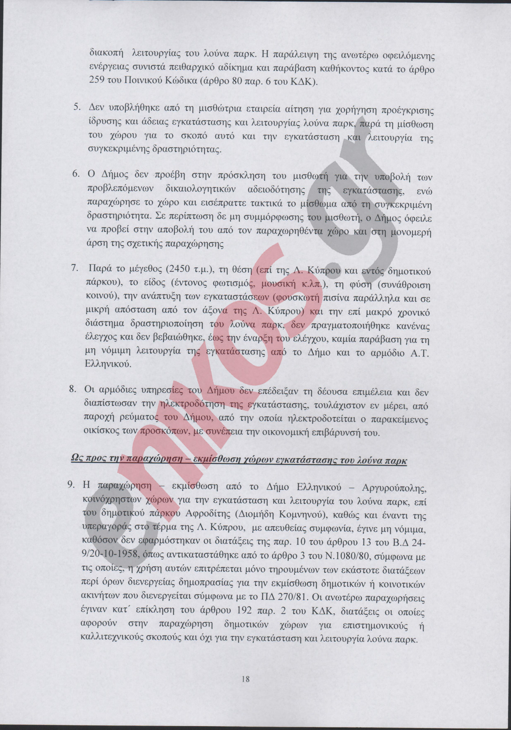 Ενδεικτικά είναι επίσης τα όσα προκύπτουν από τις τρεις αιτήσεις της εταιρείας προς το δήμο για παραχώρηση του τόσο του πάρκου Αφροδίτης όσο και του χώρου απέναντι από εμπορικό κέντρο επί της Λ.Κύπρου.