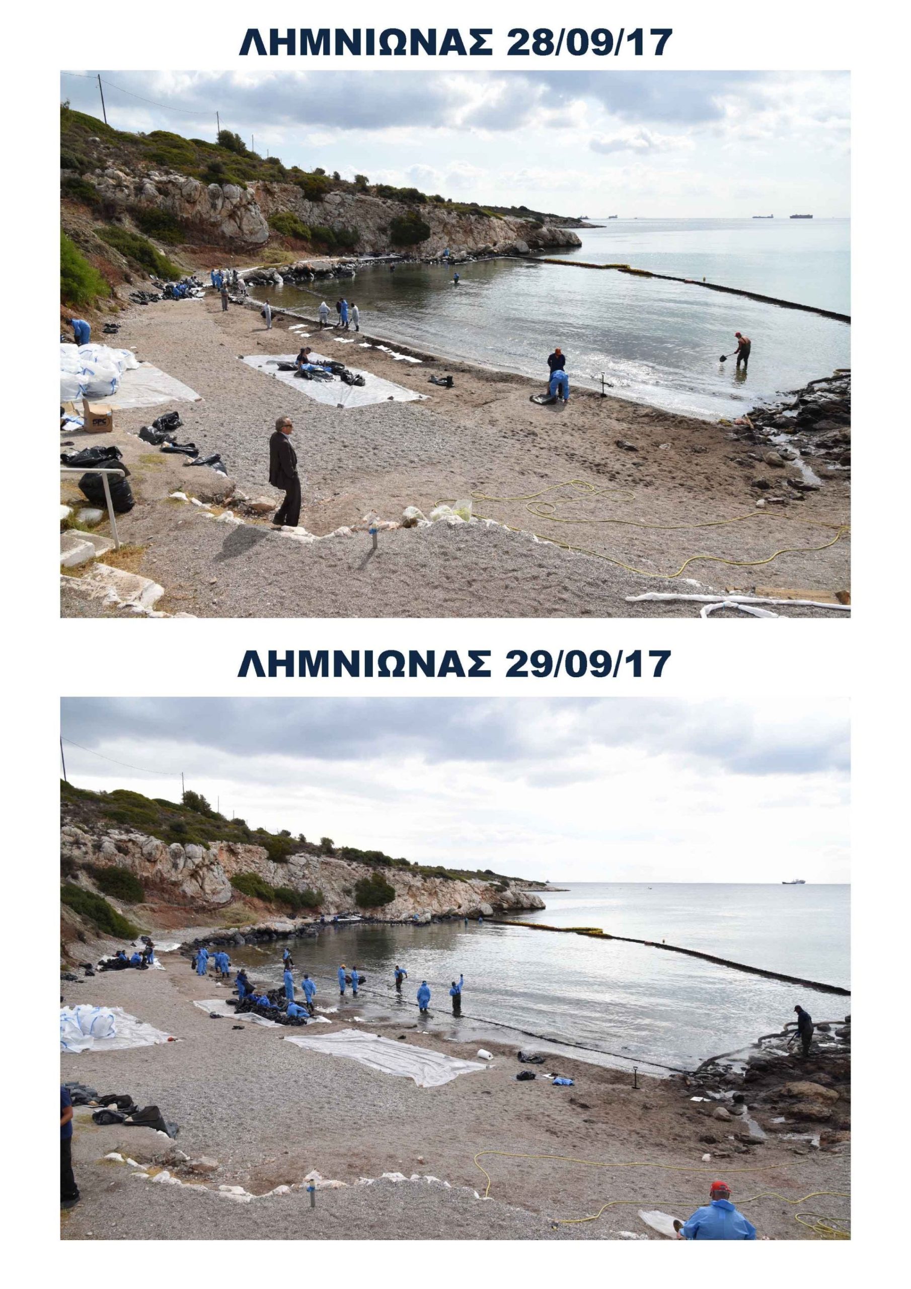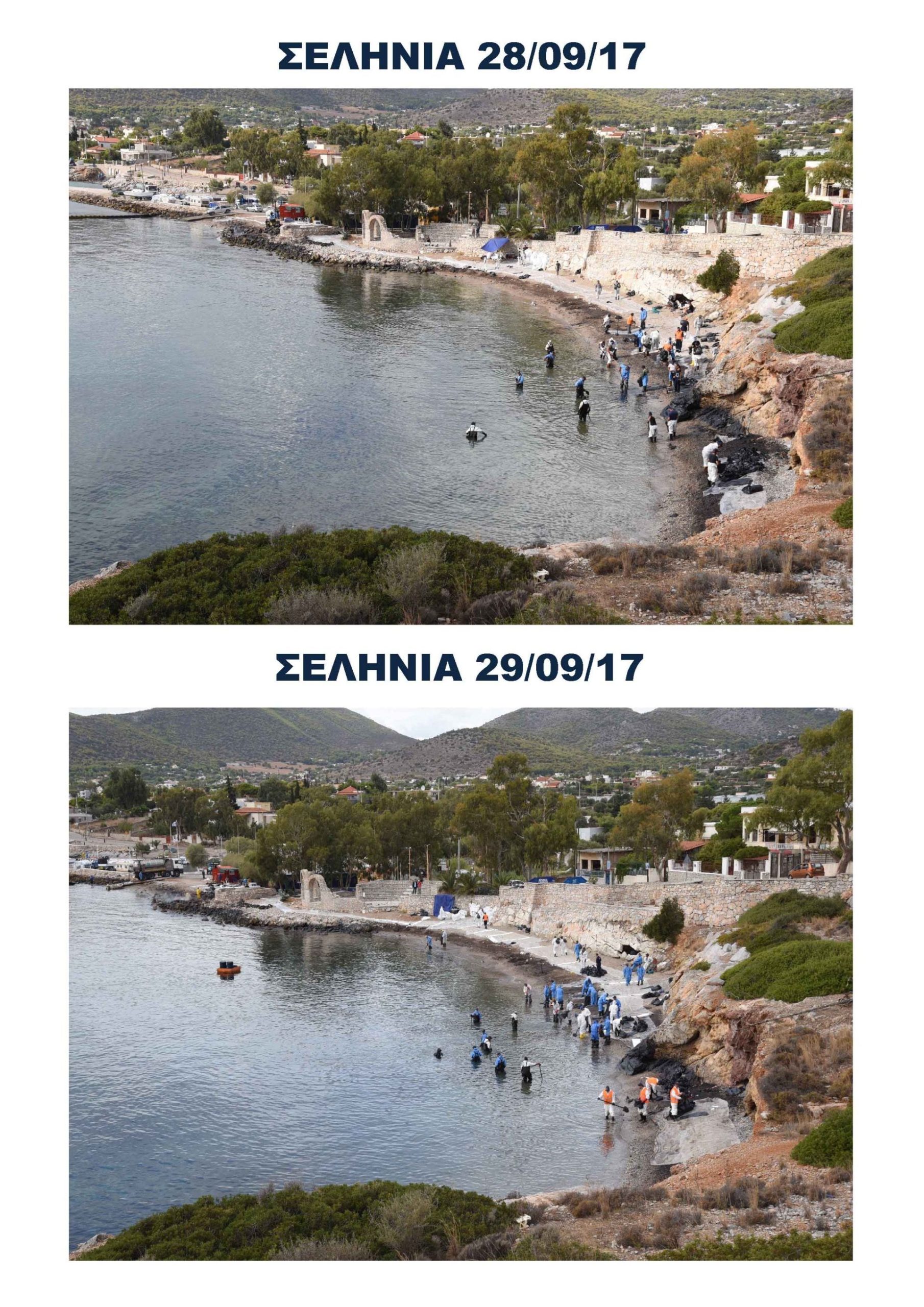 Στη Σαλαμίνα δεν υφίσταται επιφανειακή ρύπανση. Συνεχίζονται οι προσπάθειες καθαρισμού των ακτώνστην ευρύτερη περιοχή του όρμου Σεληνίων – Λιμνιώνα – Κυνοσούρας, με αντλίες υψηλής πίεσης και πέντε (05) πλυστικά μηχανήματα, από εκατόν πενήντα τέσσερα (154) άτομα, μεταξύ των οποίων προσωπικό ιδιωτικών εταιρειών και εθελοντές. Επίσης δύτες στην περιοχή «ΘΕΑΤΡΑΚΙ» διενεργούν έλεγχο και καθαρισμό του βυθού.