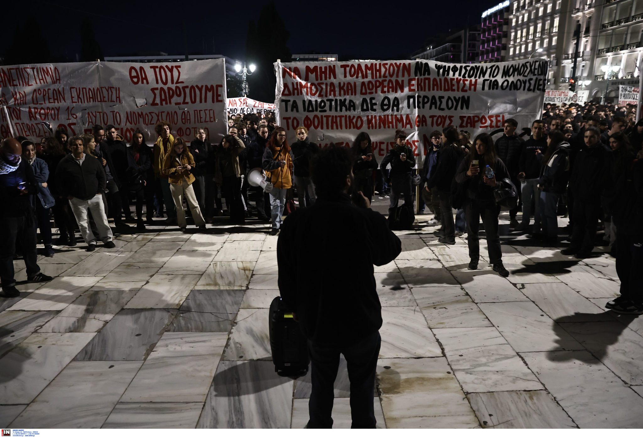 Από νωρίς το πρωί σήμερα φοιτητές και φοιτήτριες φοιτητικών συλλόγων απ’ όλη την Ελλάδα συγκεντρώθηκαν στα Προπύλαια και κατευθύνθηκαν με πορεία μέχρι τη Βουλή όπου παρέμειναν μέχρι τις 20.30 το βράδυ, με βασικά τους αιτήματα την απόσυρση του νομοσχεδίου για την ίδρυση ιδιωτικών πανεπιστημίων, αποκλειστικά δημόσιες και πραγματικά δωρεάν σπουδές, αύξηση της κρατικής χρηματοδότησης για τα πανεπιστήμια για καθηγητές, προσωπικό, υποδομές, πτυχία με αξία και δωρεάν φοιτητική μέριμνα για όλους και όλες (φοιτητικές εστίες, σίτιση, μεταφορά).