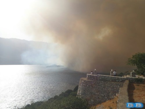 Ολοσχερώς κάηκε το εκκλησάκι του προφήτη Ηλία στην περιοχή Γονέας. Το Λιμεναρχείο έχει στείλει και ετοιμάσει πλωτά, στη περίπτωση που κριθεί απαραίτητο οι κάτοικοι να εγκαταλείψουν τον οικισμό, διότι οι δρόμοι έχουν αποκλειστεί.