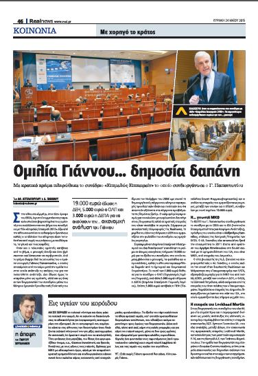 Ο «αλμυρός» λογαριασμός για τον πλούσιο μπουφέ ωστόσο δεν πήγε στους διοργανωτές αλλά σε κρατικές εταιρείες που είχαν αναλάβει τη χορηγία. Σύμφωνα με αποκλειστικές πληροφορίες της Realnews, τη μερίδα του λέοντος πλήρωσε η ΔΕΗ που εμφανίζεται στο φυλλάδιο του συνεδρίου ως «μεγάλος χορηγός».