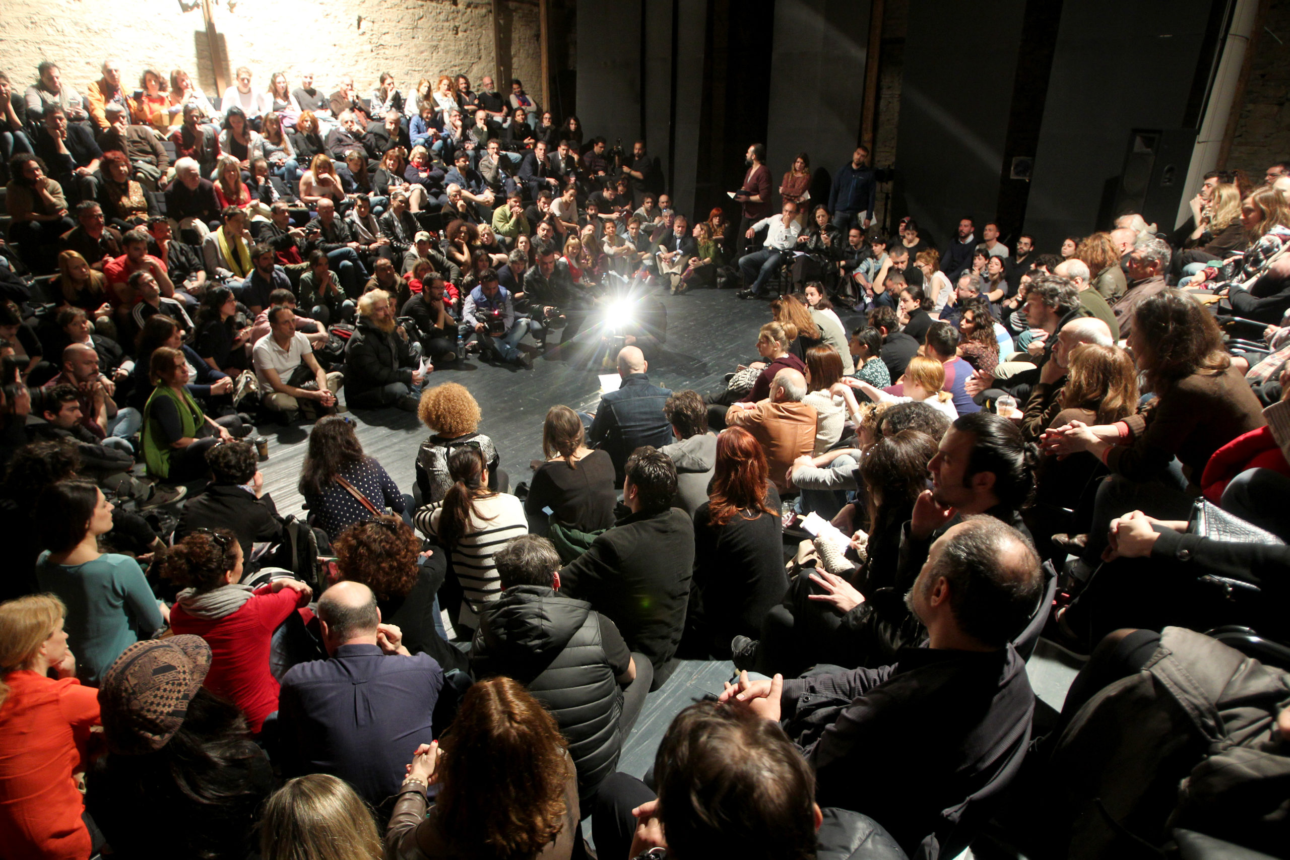 Καλλιτέχνες πραγματοποίησαν συγκέντρωση στο θέατρο Σφενδόνη προκειμένου να ακουστούν απόψεις και να αναζητηθεί ένας κοινός τρόπος αντίδρασης στην απόφαση του νέου καλλιτεχνικού διευθυντή του Διεθνούς Φεστιβάλ Αθηνών Γιαν Φάμπρ να παραμερίσει την εγχώρια καλλιτεχνική παραγωγή από τον προγραμματισμό του Φεστιβάλ.