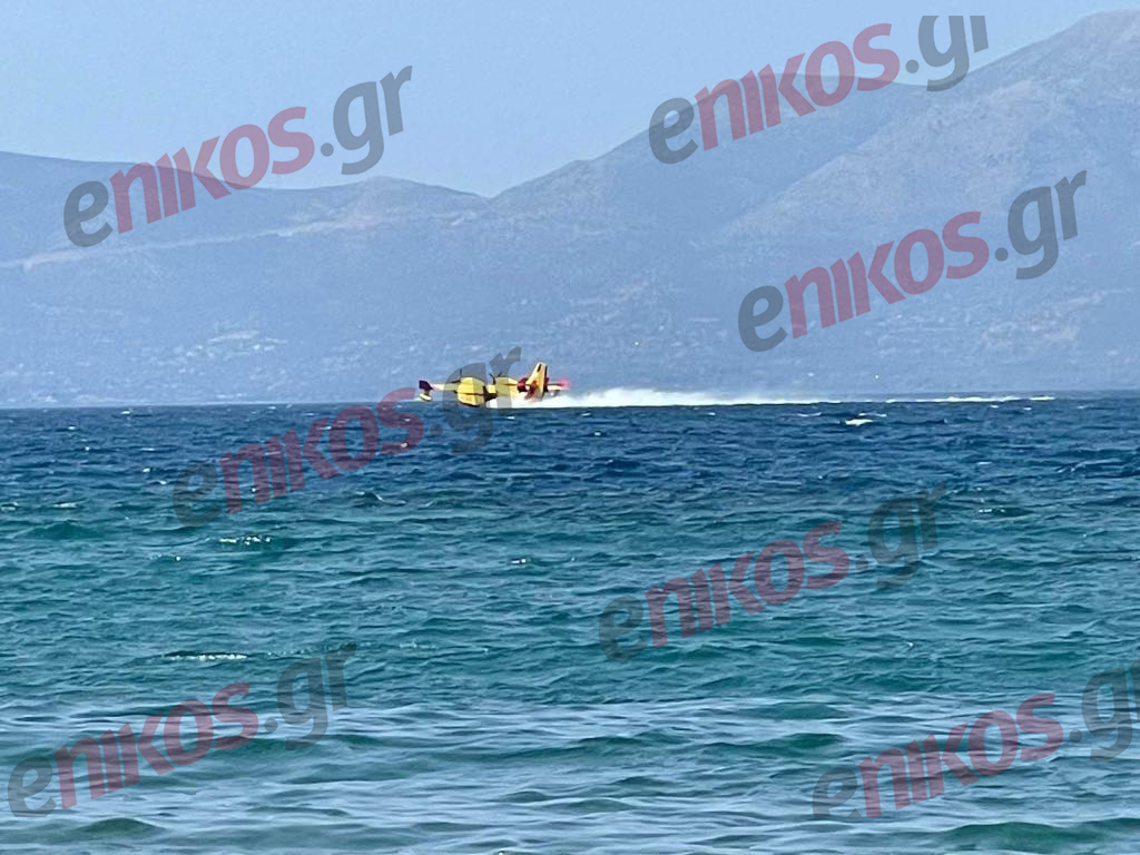 Σε φωτογραφίες που έστειλε αναγνώστης του enikos.gr διακρίνεται ένα πυροσβεστικό αεροσκάφος να εφοδιάζεται με νερό, προκειμένου να ριχτεί στη μάχη με τις φλόγες: