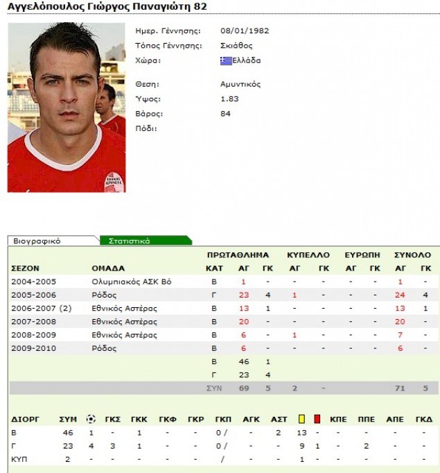 Στο βίντεο αυτό βλέπουμε τον Αγγελόπουλο σε αγώνα με τη φανέλα του Ολυμπιακού Βόλου.