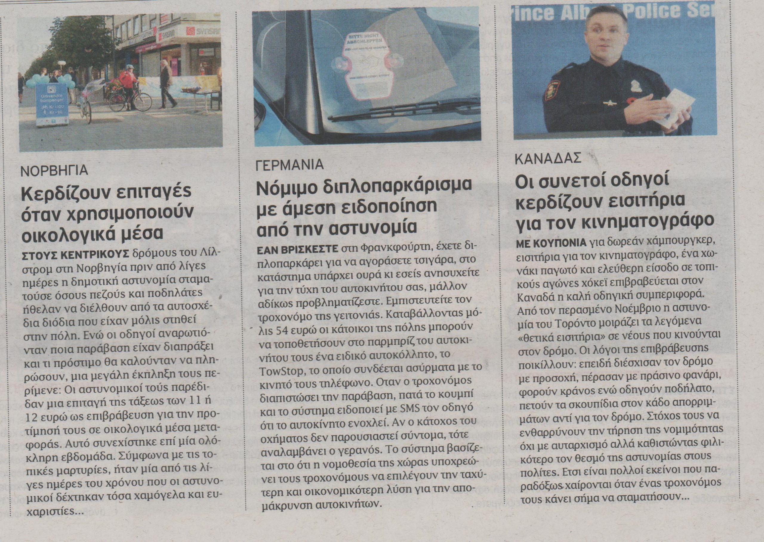 Το τελευταίο χρονικό διάστημα, υιοθετούν πρωτοποριακές μεθόδους, για να ενθαρρύνουν τη σωστή οδηγική συμπεριφορά και να καταστήσουν το θεσμό της αστυνομίας πιο φιλικό στους πολίτες. Ενδεικτική είναι η περίπτωση του Καναδά όπου οι τροχονόμοι επιβραβεύουν νέους στο δρόμο, δίνοντάς τους κουπόνια για δωρεάν γεύματα σε τοπικά εστιατόρια ή εισιτήρια για τον κινηματογράφο. Το να φορούν κράνος, ενώ ποδηλατούν ή να διασχίζουν προσεκτικά το δρόμο, θεωρούνται αιτίες ικανές, για να λάβουν το Θετικό Εισιτήριο, όπως λέγεται. Στη Γερμανία, από την άλλη, ο τροχονόμος γίνεται… σύμμαχος του παρανόμως σταθμευμένου: Όταν διαπιστώνει ότι ένα όχημα ενοχλεί, είναι υποχρεωμένος να ειδοποιήσει στο κινητό τηλέφωνο τον κάτοχό του, πριν απομακρύνει το αυτοκίνητο με γερανό.