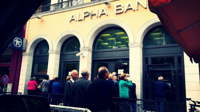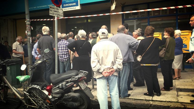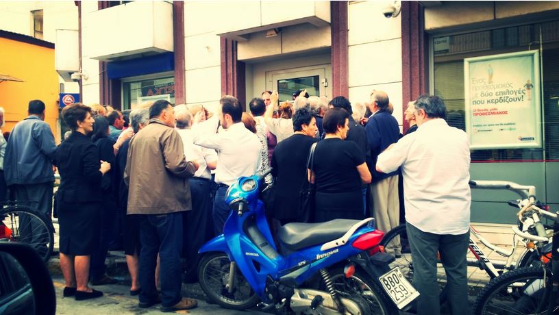 Στις ουρές των Τραπεζών έχουν στηθεί και οι συνταξιούχοι στα Τρίκαλα από τα ξημερώματα για να πάρουν το ποσό των 120 €.