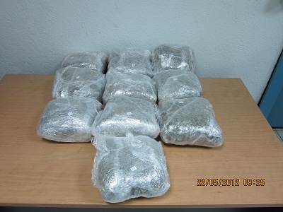 Συνελήφθησαν δύο αλλοδαποί ηλικίας 26 και 22 ετών και τρεις Έλληνες ηλικίας 47, 45 και 17 ετών, στην Αγία Βαρβάρα, για κατοχή 10 δεμάτων κάνναβης συνολικού βάρους 10 κιλών και 448 γραμμαρίων, καθώς επίσης και 7 κινητά τηλέφωνα που χρησιμοποιούσαν για τις παράνομες συναλλαγές τους.