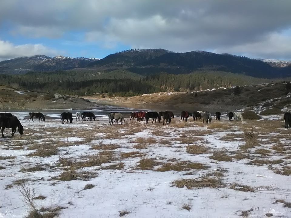 Η τεχνητή λίμνη των πηγών του Αώου δημιουργήθηκε το 1987 σε υψόμετρο 1340 μ., στο οροπέδιο Πολίτσες, προκειμένου να τροφοδοτεί το υδροηλεκτρικό εργοστάσιο της ΔΕΗ. Έχει έκταση 12 τετραγωνικά χλμ και αποτελεί ένα από τα πιο όμορφα τοπία του Μετσόβου ! Ο κ.Αλέκος Τόπης που βρέθηκε νωρίς χθες το πρωί στην περιοχή μαζί με τα άλογα της φάρμας του.