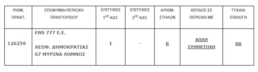 Ακόμη έναν μεγάλο νικητή ανέδειξε η κλήρωση του ΛΟΤΤΟ την περασμένη Τετάρτη, 27 Μαΐου. Ο τυχερός παίκτης κέρδισε το έπαθλο των 300.000 ευρώ, με ένα δελτίο στο οποίο είχε συμπληρώσει μόνο έξι στήλες. Ο νικητής κατέθεσε το δελτίο του σε πρακτορείο ΟΠΑΠ της Λήμνου.