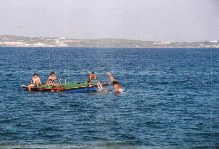 Λεζάντα: Στα ανοιχτά της πλαζ του Ε.Ο.Τ στην Αλεξανδρούπολη την δεκαετία του 1980 υπήρχε αυτή η ξύλινη εξέδρα όπου ο κόσμος κολυμπούσε και έκανε ασταμάτητες βουτιές δροσιάς στο Θρακικό Πέλαγος (πηγή: oldalexandroupoli.gr)