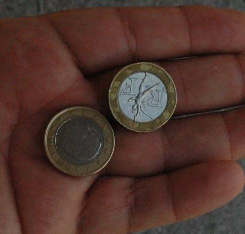 Όπως σημειώνει, πρόκειται είτε για ιταλικές λίρες είτε για αλβανικά λεκ που μοιάζουν με μονόευρα και δίευρα ενώ φυσικά δεν έχουν καμία αγοραστική αξία.