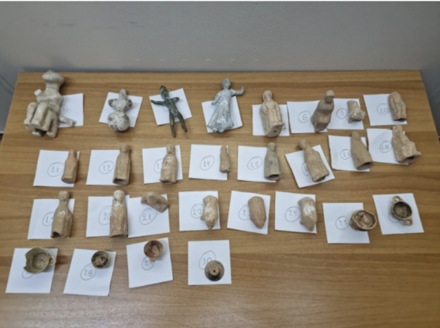 Στη συνέχεια, τα αρχαία αντικείμενα, μεταφέρθηκαν από κλιμάκιο αστυνομικών στην έδρα της ανωτέρω υπηρεσίας και εξετάσθηκαν από αρχαιολόγο της Εφορείας Αρχαιοτήτων Πειραιώς και Νήσων, η οποία γνωμάτευσε ότι (27) εμπίπτουν στις προστατευτικές διατάξεις του Νόμου περί Προστασίας Αρχαιοτήτων, ενώ τέσσερα από αυτά χρήζουν περαιτέρω διερεύνησης.