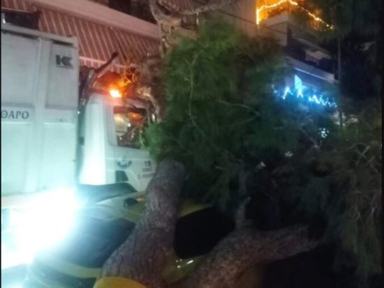Αναστάτωση προκλήθηκε το βράδυ της Κυριακής (04/01) στο Παλαιό Φάληρο, όταν ένα πεύκο ξεριζώθηκε και έπεσε πάνω σε ένα απορριμματοφόρο του δήμου και σε ένα αυτοκίνητο στη συμβολή των οδών Βενιζέλου και 28ης Οκτωβρίου, στην περιοχή της Κοψαχείλας.