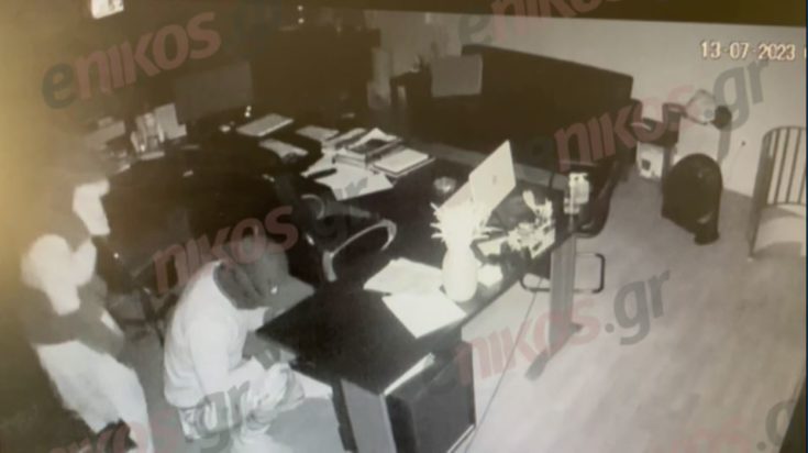 Στο πρώτο βίντεο φαίνεται μόνο ένας από τους δράστες, με καλυμμένα τα χαρακτηριστικά του προσώπου του και φορώντας γάντια, να ψάχνει τον χώρο.