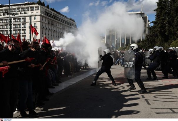 Νεαροί έχουν καταφέρει να φτάσουν στην ταράτσα εμπορικού κτιρίου της πλατείας Συντάγματος και ανάβουν πυρσούς. Οι αστυνομικοί συλλαμβάνουν έναν νεαρό. Στην Βασιλέως Γεωργίου συνεχίζονται οι μάχες σώμα με σώμα μεταξύ αστυνομικών και φοιτητών. Σε πεδίο αντιπαράθεσης εντός του κοινοβουλίου μετατράπηκαν τα σοβαρά επεισόδια στο Σύνταγμα.