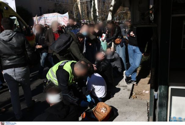 Φωτογραφίες του πρακτορείου INTIMENEWS δείχνουν φοιτητές να έχουν τραυματιστεί και να δέχονται τις πρώτες βοήθειες από το ΕΚΑΒ. Σύμφωνα με πληροφορίες υπάρχουν επτά τραυματίες.