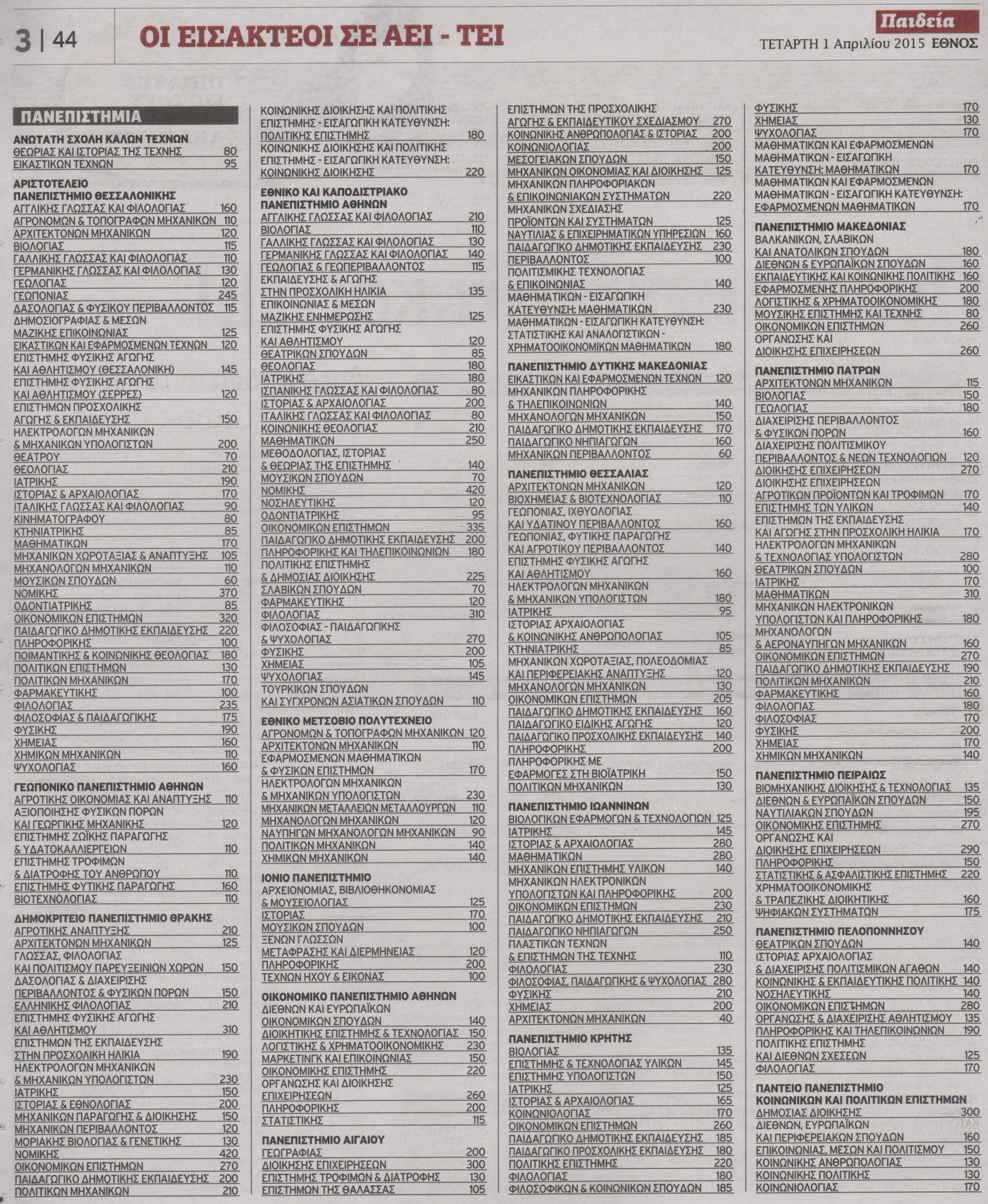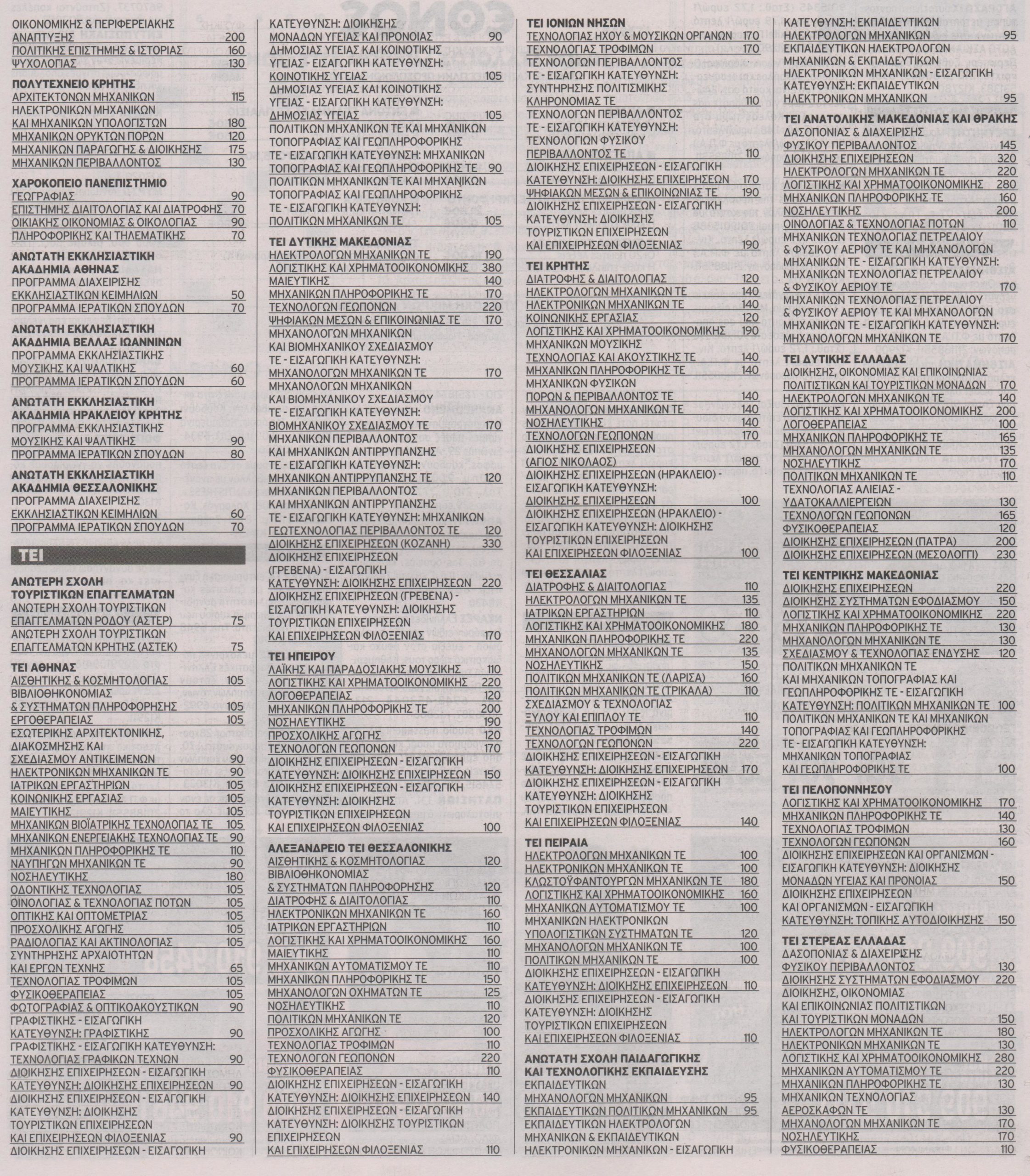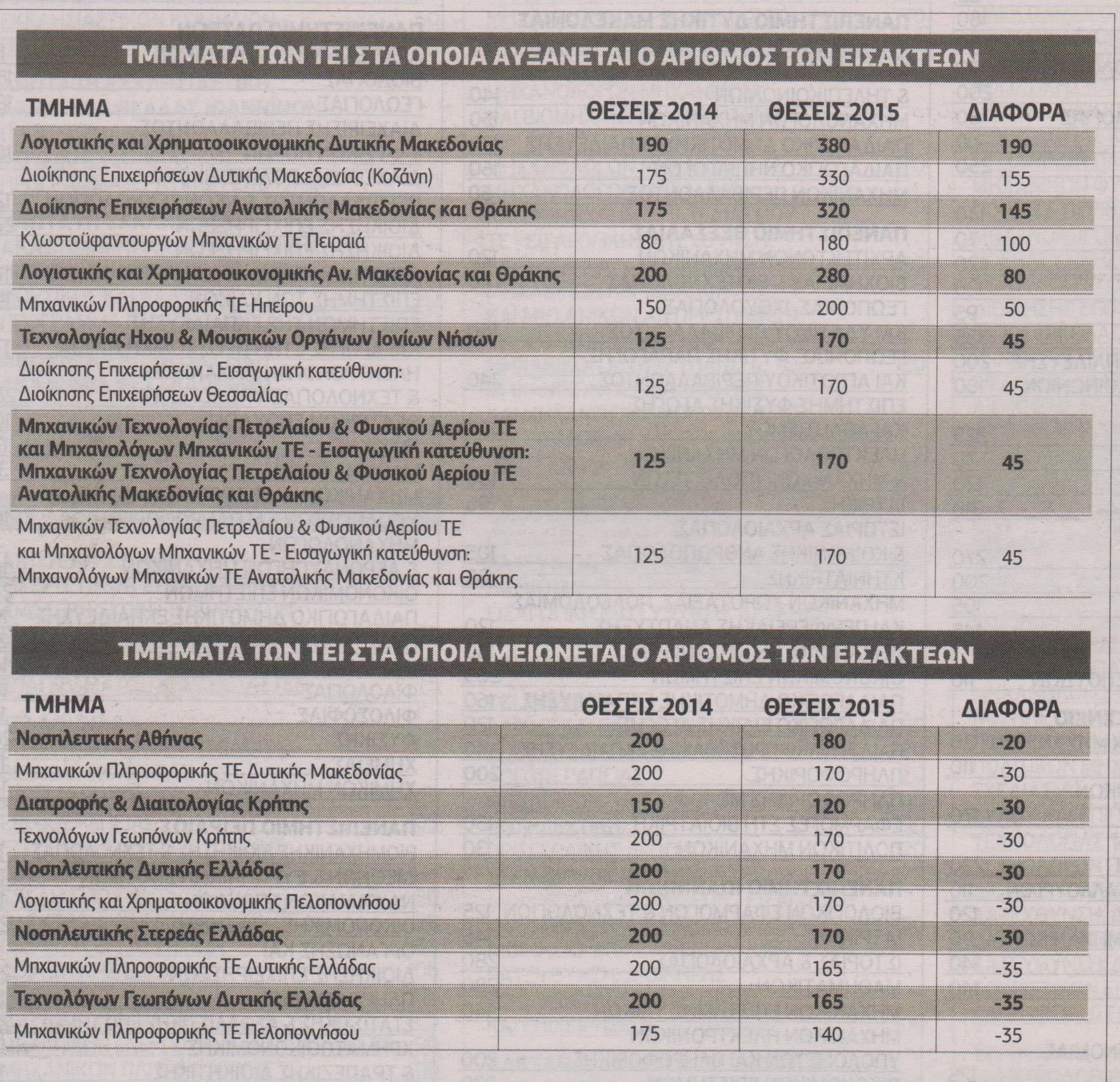 Από τα στοιχεία που έδωσε χτες το υπουργείο Παιδείας, φαίνεται ότι στα πανεπιστήμια οι θέσεις μειώθηκαν κατά 2.535 και στα ΤΕΙ αυξήθηκαν κατά 575. Σύμφωνα με τις χτεσινές ανακοινώσεις του υπουργείου, από αυτές τις θέσεις οι 44.200 θα δοθούν στα Πανεπιστήμια και στις Ανώτατες Εκκλησιαστικές Ακαδημίες και οι 24.145 θέσεις στα ΤΕΙ και στις τουριστικές σχολές.