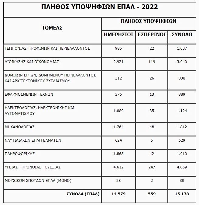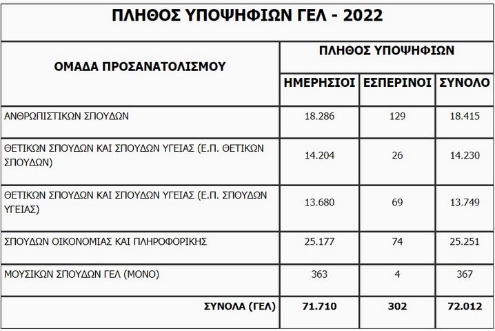 Τα στατιστικά στοιχεία για τις βαθμολογίες και τους υποψήφιους