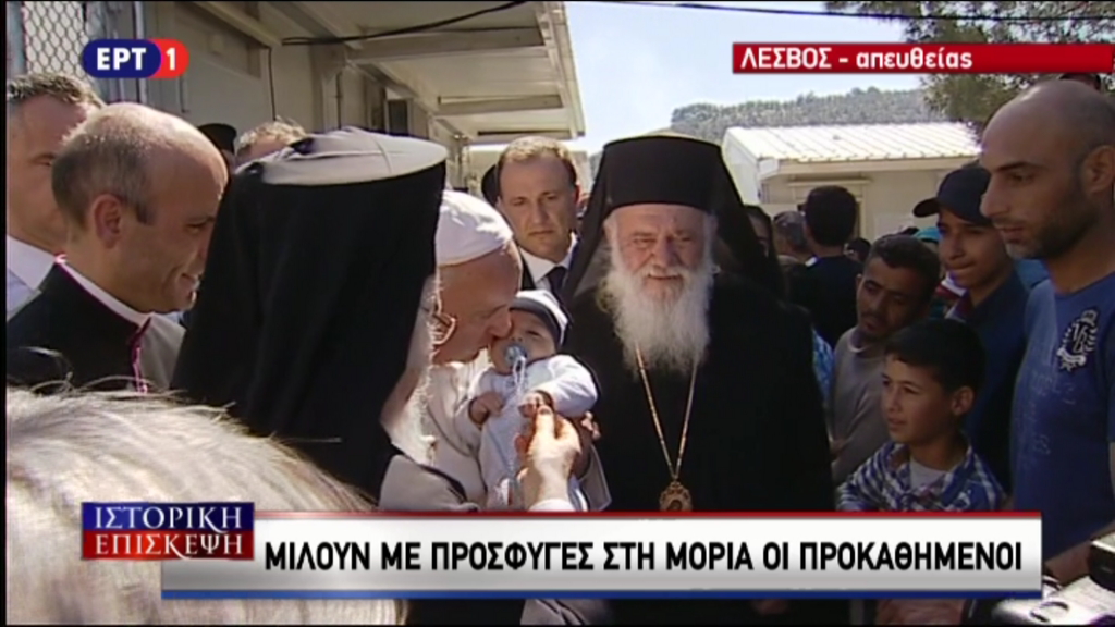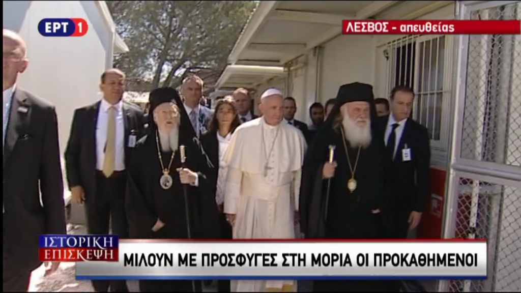 Ο Οικουμενικός Πατριάρχης Βαρθολομαίος, ο Πάπας Φραγκίσκος και ο Αρχιεπίσκοπος Ιερώνυμος χαιρετούν και συνομιλούν με πρόσφυγες στο hot spot της Μόριας…
