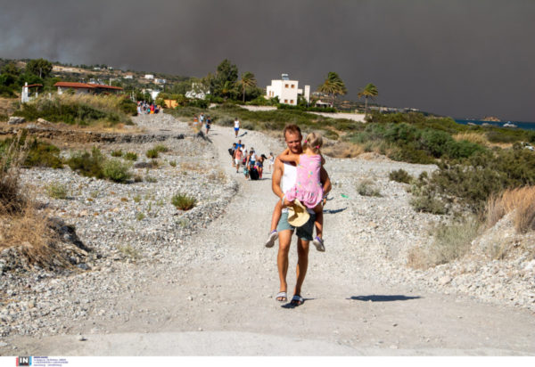 Νωρίτερα, χωριά εκκενώθηκαν αλλά και ξενοδοχειακές μονάδες που παραδόθηκαν στη φωτιά, με τους τουρίστες να φυγαδεύονται εγκαίρως. Αρκετό κόσμο απεγκλώβισε το Λιμενικό από θαλάσσης στις περιοχές Κιοτάρι και Λάρδος, ενώ για το λόγο αυτό επιτάχθηκαν και τουριστικά σκάφη με την οικολογική καταστροφή να είναι ανυπολόγιστη.