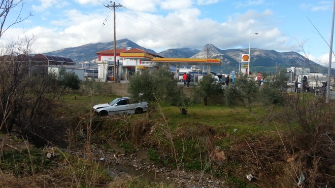 Σύμφωνα με τους αυτόπτες μάρτυρες ο οδηγός είχε αναπτύξει μεγάλη ταχύτητα όταν από ένα βενζινάδικο βγήκε ένα όχημα που του έκλεισε το δρόμο. Προκειμένου να αποφύγει τη σύγκρουση και να μην περάσει στο αντίθετο ρεύμα μπήκε μέσα στο πρατήριο καυσίμων, το διέσχισε, πέρασε την περίφραξη και κατέληξε σε ρέμα, ελάχιστα εκατοστά πριν το νερό.