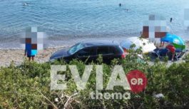 Σύμφωνα με το eviathema.gr, μία γυναίκα στην προσπάθεια της να σταθμεύσει το όχημα της, έχασε τον έλεγχο με αποτέλεσμα να πέσει από ύψος 5 μέτρων και να «προσγειωθεί» στην παραλία σε μικρή απόσταση από τους λουόμενους.