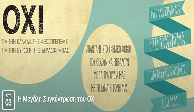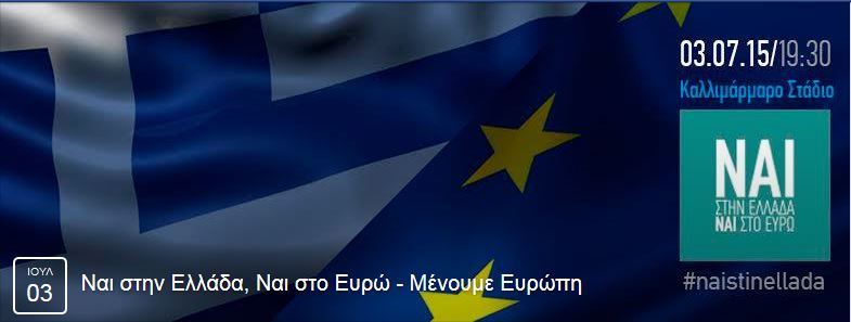 Οι υποστηρικτές του «ναι» καλούν στη συγκέντρωση που θα πραγματοποιηθεί την Παρασκευή 3 Ιουλίου, στις 19:30 στο Καλλιμάρμαρο.