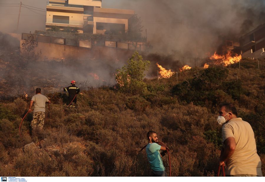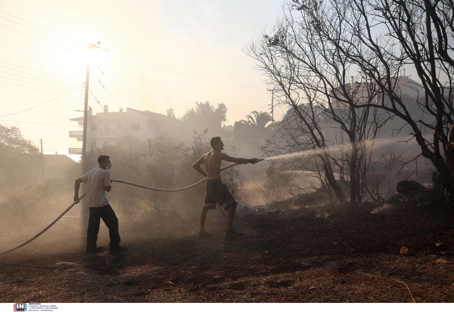 Δείτε φωτογραφίες που φαίνονται οι απελπισμένες προσπάθειες των κατοίκων να σβήσουν την φωτιά που πλησίαζε στα σπίτια τους με μάνικες και λάστιχα:
