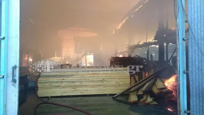 Ολοσχερώς καταστράφηκε μία αποθήκη ξυλείας στις Μουρνιές στα Χανιά, από φωτιά που ξέσπασε τα ξημερώματα της Τετάρτης.