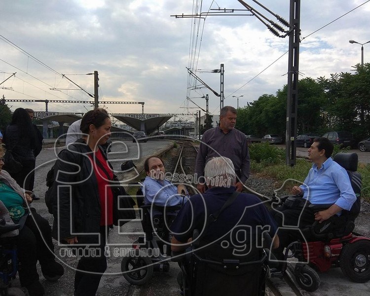 Μέλη του Πανελλήνιου Συλλόγου Παραπληγικών προχώρησαν σε αποκλεισμό των γραμμών έξω από τον Σιδηροδρομικό Σταθμό Θεσσαλονίκης σήμερα το πρωί.