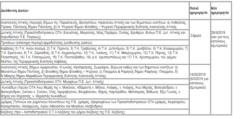 Συγκεκριμένα, η παράταση αυτή αφορά τις κάτωθι περιοχές: