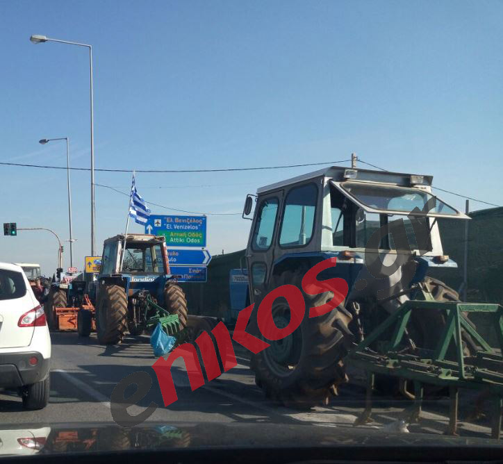 Παρατεταγμένα τρακτέρ στη διασταύρωση του Κορωπίου για αεροδρόμιο – ΦΩΤΟ