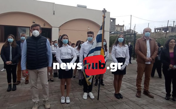 Μαθητές και γονείς, ο Δήμαρχος Μινώα Πεδιάδας, ο Περιφερειάρχης Κρήτης, μέλη της Τοπικής Αυτοδιοίκησης και τοπικοί Βουλευτές, συγκεντρώθηκαν μπροστά από τον Ι.Μ. Ναό του Αγίου Ανδρέα στο Αρκαλοχώρι για να γιορτάσουν την επέτειο της 28ης Οκτωβρίου.