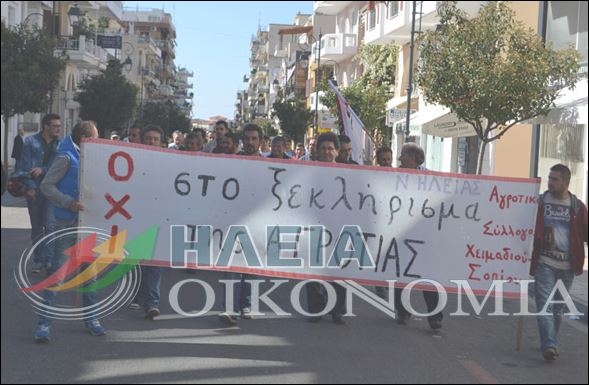 Πορεία διαμαρτυρίας με τα τρακτέρ τους πραγματοποίησαν μετά το τέλος της παρέλασης στον Πύργο, αγρότες της περιοχής.