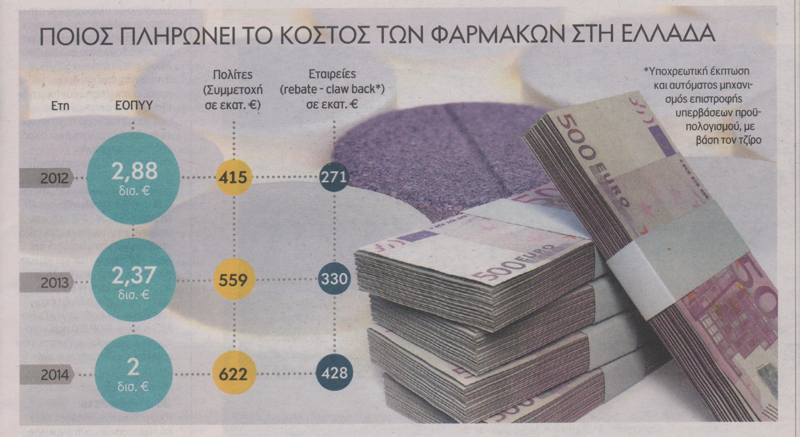 Αυτό σημαίνει ότι το διατιθέμενο ποσό από τον ΕΟΠΥΥ θα παραμείνει σχεδόν αμετάβλητο (δαπάνη 2014 + 3% ετησίως) και οι εταιρείες θα πρέπει να προσαρμόσουν τις τιμές τους προς τα κάτω.