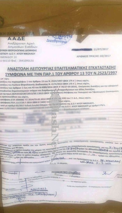 Αποτέλεσμα να διαπιστωθούν αρκετές παρανομίες, για αποδείξεις που δεν κόβονται και για παράνομες ταμειακές μηχανές που δεν ήταν δηλωμένες.