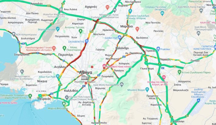 Προβλήματα καταγράφονται και στην Λεωφόρο Ποσειδώνος στο ρεύμα προς Πειραιά αλλά και στην Βάρης – Κορωπίου.