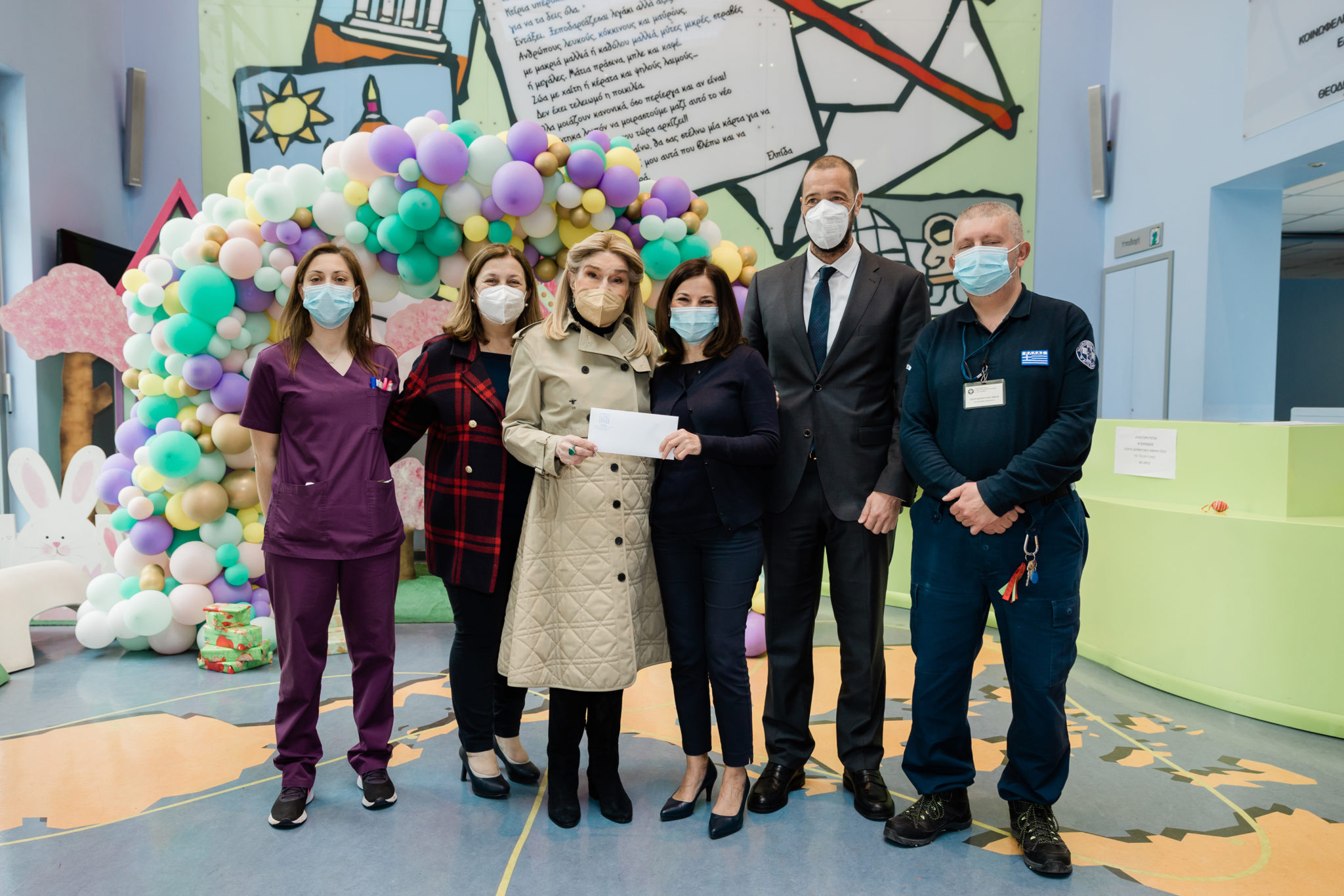Οι μικροί ασθενείς μαζί με τους γονείς τους, και τον Διοικητή των Νοσοκομείων Παίδων «Η ΑΓΙΑ ΣΟΦΙΑ» και «Π.&Α. ΚΥΡΙΑΚΟΥ» κύριο Μανώλη Παπασάββα, υποδέχτηκαν την Πρόεδρο του Σωματείου «ΕΛΠΙΔΑ» κυρία Μαριάννα Β. Βαρδινογιάννη προσφέροντάς της πασχαλινές χειροτεχνίες και δημιουργίες, θέλοντας με αυτό τον τρόπο να της εκφράσουν την αγάπη τους.