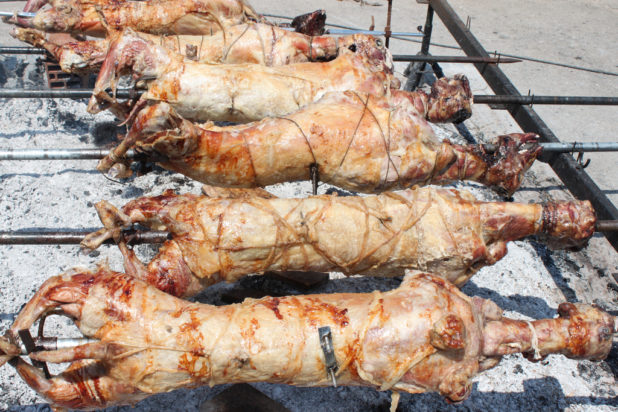 Στο σημείο ψήνονται περισσότερα από 90 αρνιά και 50 κοκορέτσια, σε ένα εντυπωσιακό πασχαλινό σκηνικό που μαγνητίζει βλέμματα – και ορέξεις.
