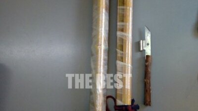 -Δύο αυτοσχέδια ξύλινα ρόπαλα μήκους 55 και 61 εκ αντίστοιχα.