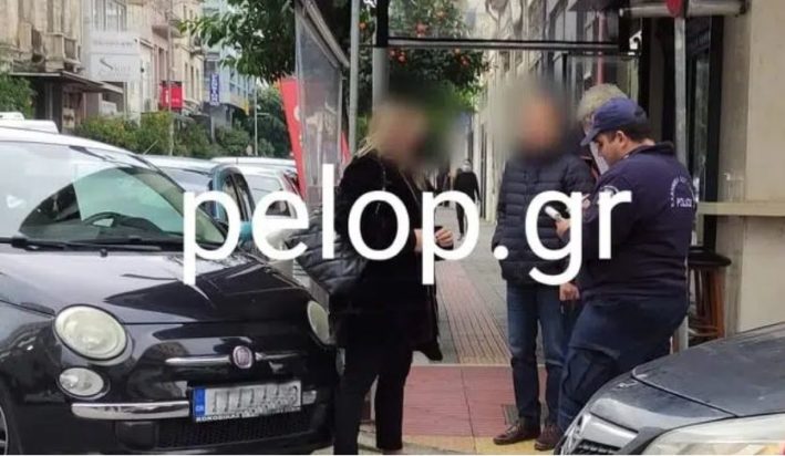 Αξίζει να σημειωθεί, ότι στη συμβολή των οδών Αγίου Ανδρέου και Γεροκωστοπούλου, τη στιγμή που βεβαίωνε παράβαση σε οδηγό για παράνομη στάθμευση, ο αστυνομικός συνομιλούσε με άλλους δύο πολίτες από διπλανή καφετέρια, οι οποίοι και εκείνοι δεν φορούσαν μάσκα.