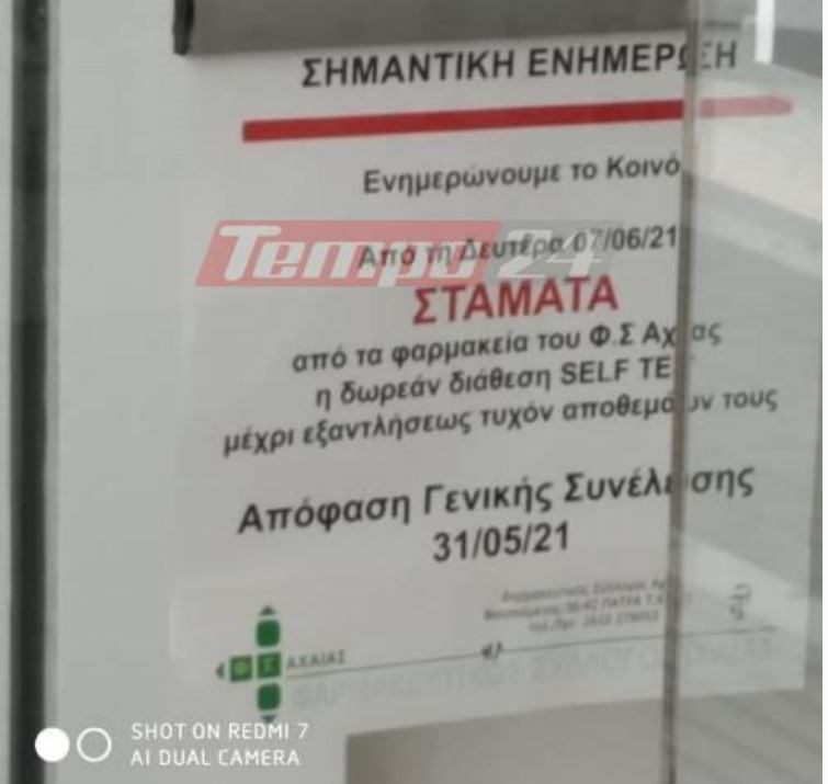 Να σημειωθεί πως σήμερα, Δευτέρα σύμφωνα με την απόφαση του υπουργείου Εργασίας, τρία δωρεάν self test για τον κορονοϊό θα μπορούν να προμηθευτούν, μέσω των φαρμακείων, οι εργαζόμενοι στον ιδιωτικό και τον δημόσιο τομέα, όμως οι Πατρινοί αντιμετωπίζουν σοβαρό πρόβλημα.