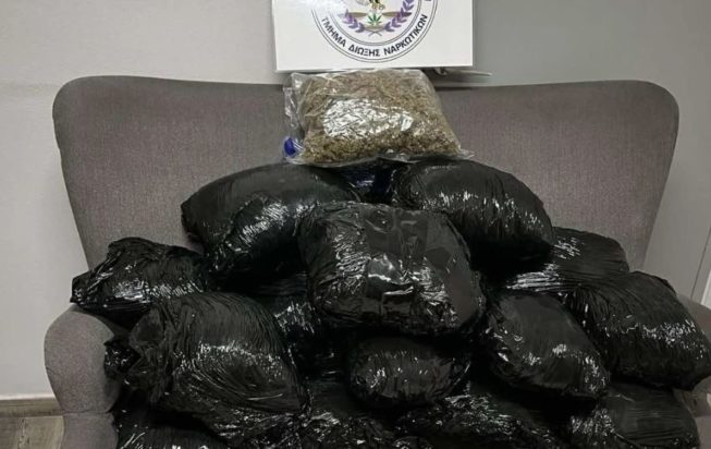 Υπενθυμίζεται ότι οι αστυνομικοί της Δίωξης Ναρκωτικών βρήκαν και κατέσχεσαν 12 κιλά και 846 γραμμάρια κάνναβης, διαμοιρασμένα σε 20 αυτοσχέδιες ανισοβαρείς συσκευασίες.