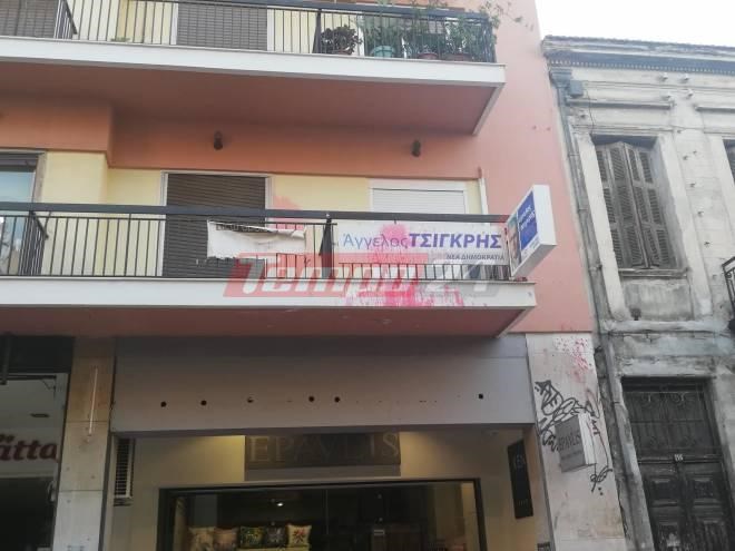 Επίθεση με μπογιές δέχθηκε το γραφείο του βουλευτή Αχαΐας της Νέας Δημοκρατίας, Άγγελου Τσιγκρή. Άγνωστοι πέταξαν κόκκινη μπογιά στο πολιτικό του γραφείο επί της οδού Μαιζώνος στο ύψος της λεωφόρου Γούναρη.