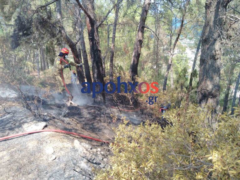Σύμφωνα με πληροφορίες του apohxos.gr, στο σημείο επιχειρούν τρία πυροσβεστικά οχήματα με έξι πυροσβέστες, καθώς και πεζοπόρο τμήμα της Ειδικής Μονάδας Δασικών Επιχειρήσεων.